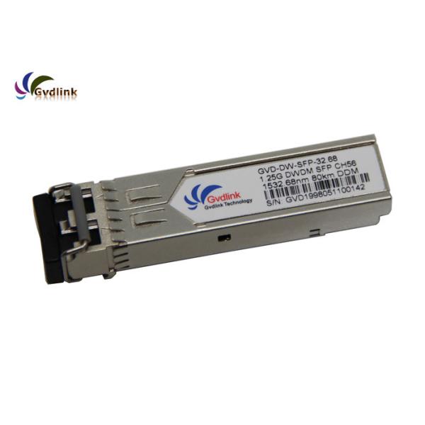 Gvdlink DWDM SFP Transceiver exhibits excellent wavelength stability , supporting operation at 100 GHz channel , cost effective module . It is designed for DWDM SONET/ SDH , Gigabit Ethernet and Fiber Channel applications . The transceiver consists of two sections : The transmitter section incorporates a colded DFB laser . And the receiver section consists of a APD photodiode integrated with a TIA . All modules satisfy class I laser safety requirements . Gvdlink DWDM SFP transceiver provides an enhanced monitoring interface , which allows real-time access to device operating parameters such as transceiver temperature , laser bias current , transmitted optical power , received optical power and transceiver supply voltage , laser temperature and TEC current.